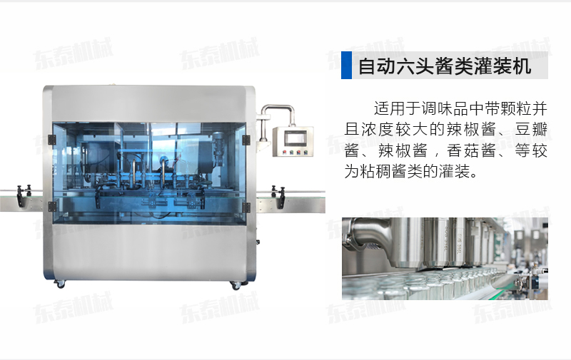 該系列灌裝機采用活塞式氣缸驅(qū)動原理,適用于調(diào)味品中帶顆粒并且濃度較大的辣椒醬、豆瓣醬、辣椒醬,香菇醬、等較為粘稠醬類的灌裝。灌裝轉(zhuǎn)閥可以根據(jù)客戶物料定做加大,以適應(yīng)不同客戶物料的灌裝需求。配備臥式攪拌料斗,大限度的保障在灌裝過程中物料均勻、無油醬分離。該設(shè)備在設(shè)計上大大縮短了下料斗到灌裝頭的灌裝距離,克服了含油量大的物料(如:含芝麻粒的辣椒油)在灌裝過程中出現(xiàn)的有些瓶油多,有些瓶醬多的灌裝誤差大的缺點。