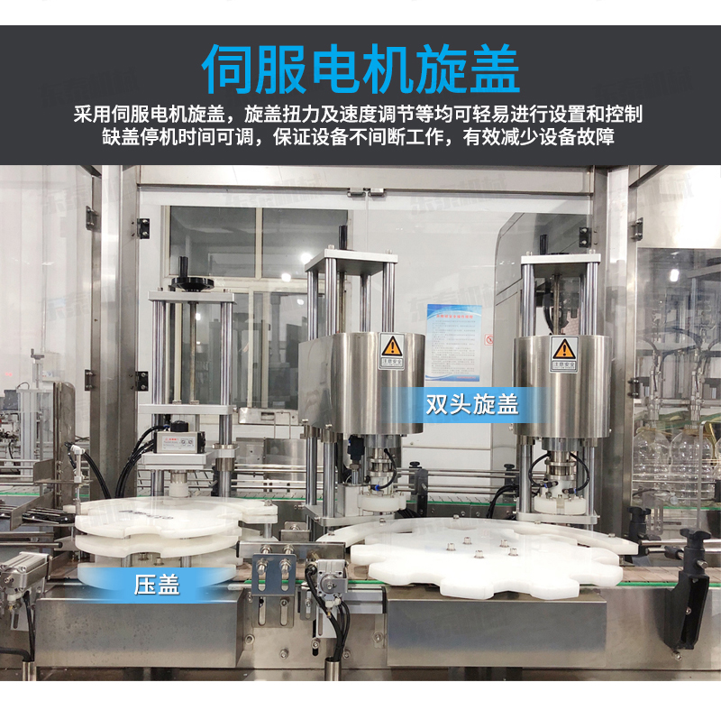 該枇杷膏灌裝機(jī)生產(chǎn)線(xiàn)-上蓋機(jī)結(jié)合用戶(hù)使用的情況,摒棄了傳統(tǒng)轉(zhuǎn)盤(pán)式真空旋蓋機(jī)的弊端,研制開(kāi)發(fā)的新型設(shè)備,設(shè)備自動(dòng)檢測(cè)到設(shè)定數(shù)量的瓶子、蓋子進(jìn)入到真空旋蓋機(jī)內(nèi),旋蓋機(jī)彩色顯示屏?xí)䦟?shí)時(shí)顯現(xiàn)旋蓋狀況,整機(jī)多點(diǎn)檢測(cè),當(dāng)進(jìn)口無(wú)瓶無(wú)蓋、出口堵塞、定位不準(zhǔn)、瓶身傾倒均自動(dòng)停機(jī)。單個(gè)旋蓋頭達(dá)到的真空度都可以單獨(dú)顯示,單獨(dú)調(diào)整。合格率達(dá)到100%!