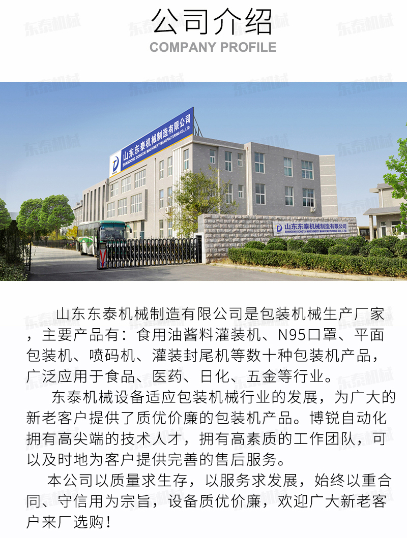 沈陽東泰機(jī)械隸屬于山東東泰機(jī)械,主營粉劑包裝機(jī)、醬類醬料包裝機(jī)、食用油灌裝機(jī)、食品包裝機(jī)、包裝流水線、灌裝生產(chǎn)線等產(chǎn)品,并且為東北地區(qū)客戶提供售后維修服務(wù)...