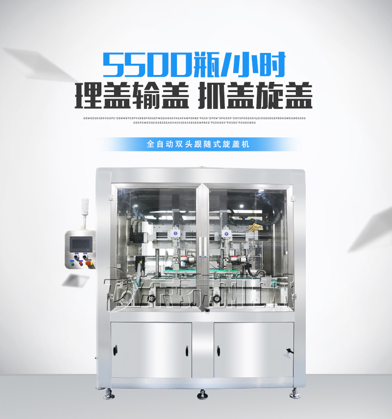 輸送機構(gòu)及控制系統(tǒng)組成。整機結(jié)構(gòu)簡單、調(diào)整方便。該設備為我司研制,產(chǎn)品在移動過程中,完成旋蓋動作。區(qū)別于常規(guī)旋蓋機,在旋蓋時需要停頓,會使物料晃出瓶口,污染瓶身。該機旋蓋不停頓,有效的避免了旋蓋停頓晃液,保持瓶身清潔。