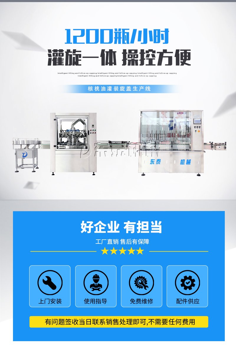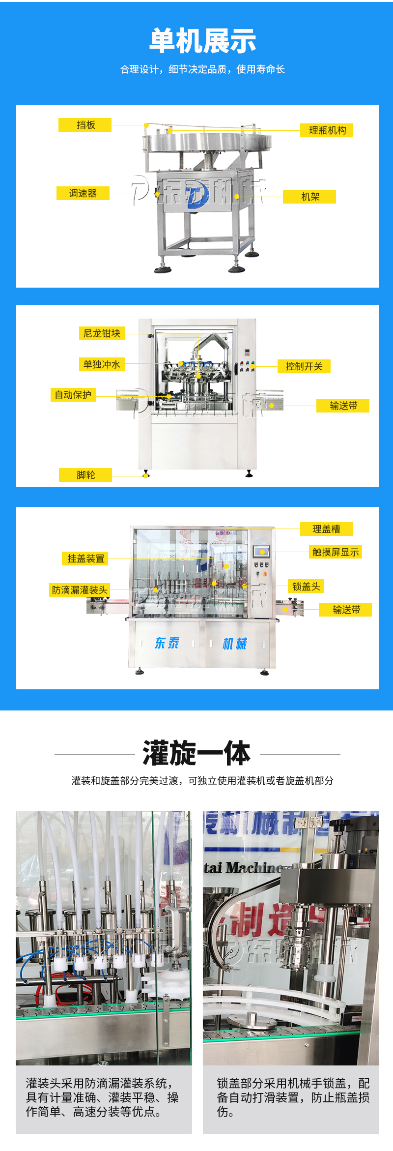 本灌裝流水線設(shè)備具有穩(wěn)定可靠、自動化水平高,相比同類產(chǎn)品有著更長的使用年限,維護(hù)簡單,整線中各設(shè)備的協(xié)調(diào)性、連貫性強(qiáng),整線設(shè)計合理等特點。灌裝設(shè)備采用獨家專利系統(tǒng)結(jié)構(gòu),為當(dāng)今行業(yè)內(nèi)水平,整