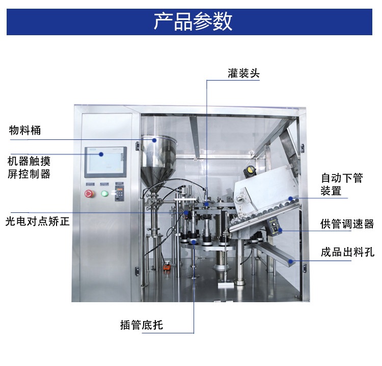 A、RGNF-30適用于醫(yī)藥、食品、化妝品、日用化工用品等行業(yè)的塑管、鋁塑復(fù)合管灌裝封尾需要。可將各種 糊狀、膏狀、粘度流體等物料順利準(zhǔn)確地注入軟管中,并完成管內(nèi)熱風(fēng)加熱、封尾和打批號(hào)、生產(chǎn)日期等。