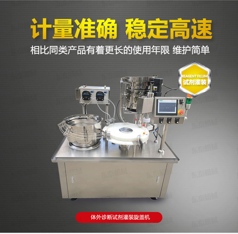 診斷試劑灌裝旋蓋一體機是在引進和吸收國外技術的基礎上,由我公司自主研發(fā)的一款IVD診斷試劑灌裝旋蓋一體機,能同時完成自動理瓶、自動上瓶、定量灌裝、自動理蓋、上蓋和旋蓋封口等動作。本機采用日本高精度封閉式凸輪分度工位器,精度高,運行可靠,使用壽命長。該分度器結構簡單,長期使用無需維修。該型號設備主要用于ⅣD體外診斷試劑制藥、生物制藥行業(yè)及科研領域裝。機器設計緊湊合理、外形簡潔美觀,灌裝量調節(jié)方便。